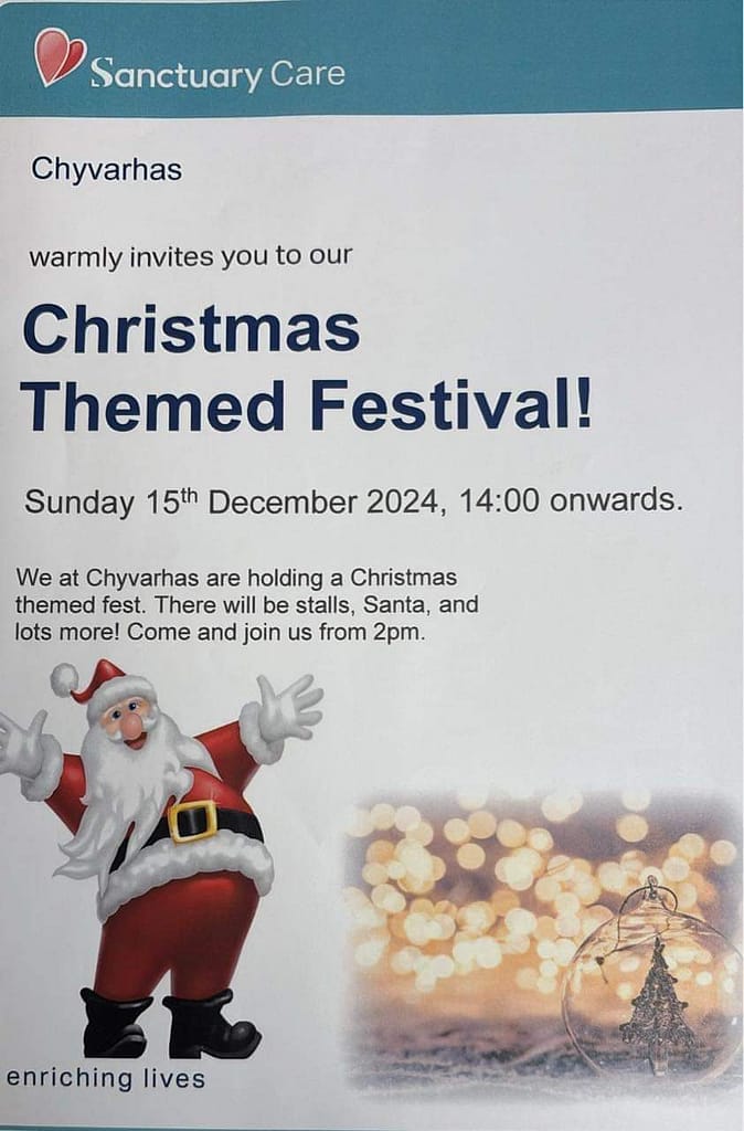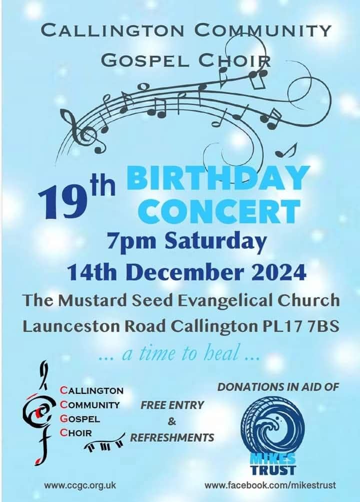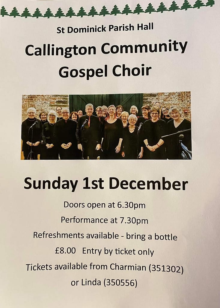 The Christmas tree festival will be taking place in St.Marys church, starting on 6th of December until 20th of December with entertainment on the 6th. Entertainment including Callington Town band, local schools, St.Marys choir & Callington CADS