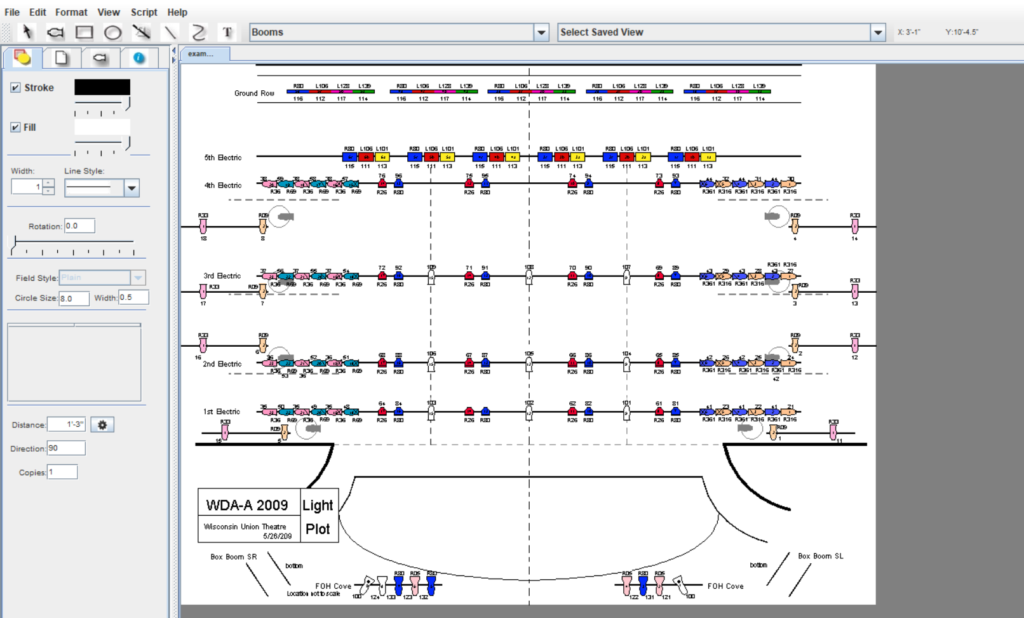 LXplan : LXPlan is an application for drawing light plots and generating paperwork. LXPlan combines drawing a light plot with editing information attached to graphic objects in the drawing. LXPlan produces reports by linking the graphics, attached data, and additional databases related to the properties of these objects. LXPlan is still being developed and tested.